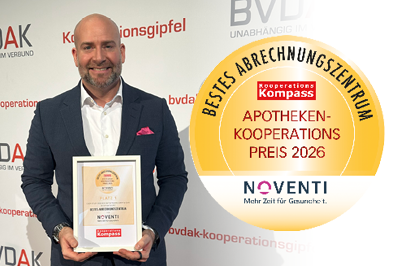 München, 5. Februar 2026 – NOVENTI Health SE, Deutschlands führendes Unternehmen für Abrechnung und Software im Gesundheitswesen, wurde zum achten Mal als „Bestes Abrechnungszentrum Deutschlands“ ausgezeichnet. Grundlage ist die „Coop-Study 2026“ der Fachzeitschrift „Die erfolgreiche Apotheke“, für die zwischen Oktober und Dezember 2025 mehr als 800 Apothekerinnen und Apotheker befragt wurden. Die Preisverleihung fand am 5. Februar 2026 auf dem Kooperationsgipfel des BVDAK (Bundesverband Deutscher Apothekenkooperationen e. V.) in München statt.