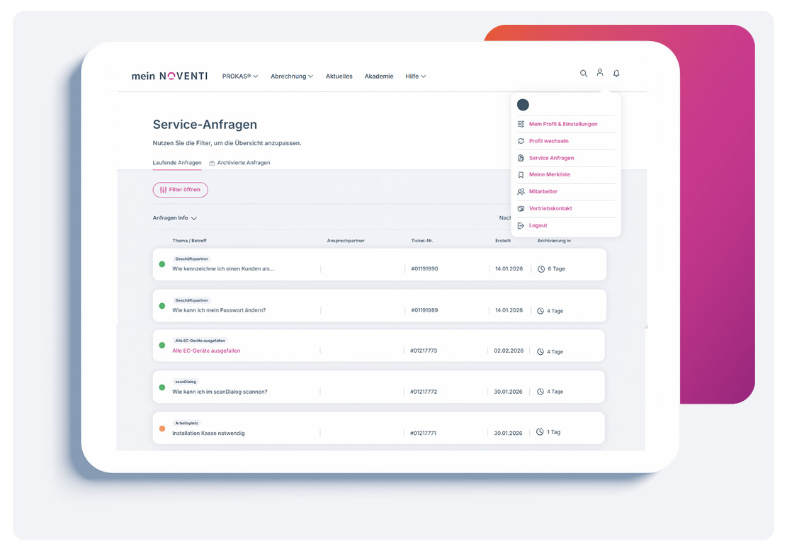 Ihr modernes Kundenportal rund um die NOVENTI-Lösungen – und der zentrale Einstieg in unseren Service.